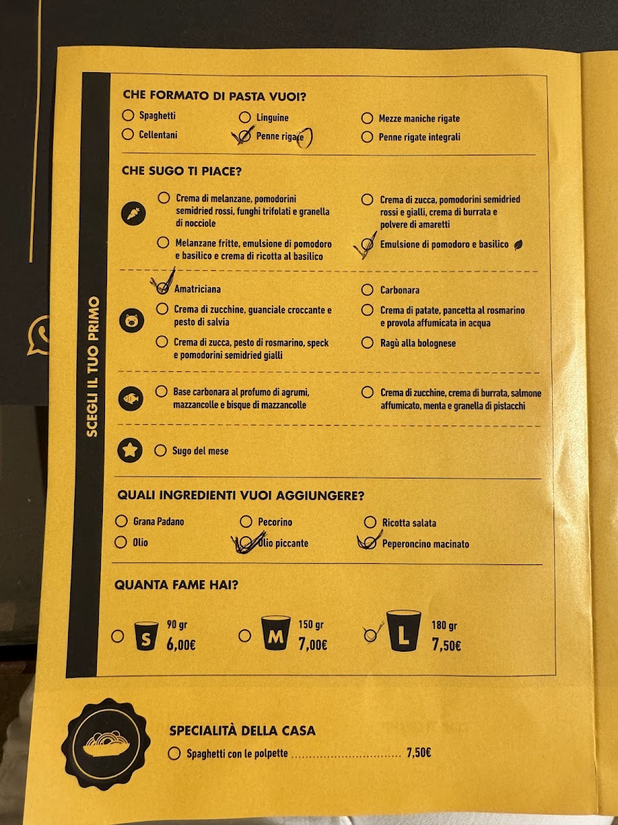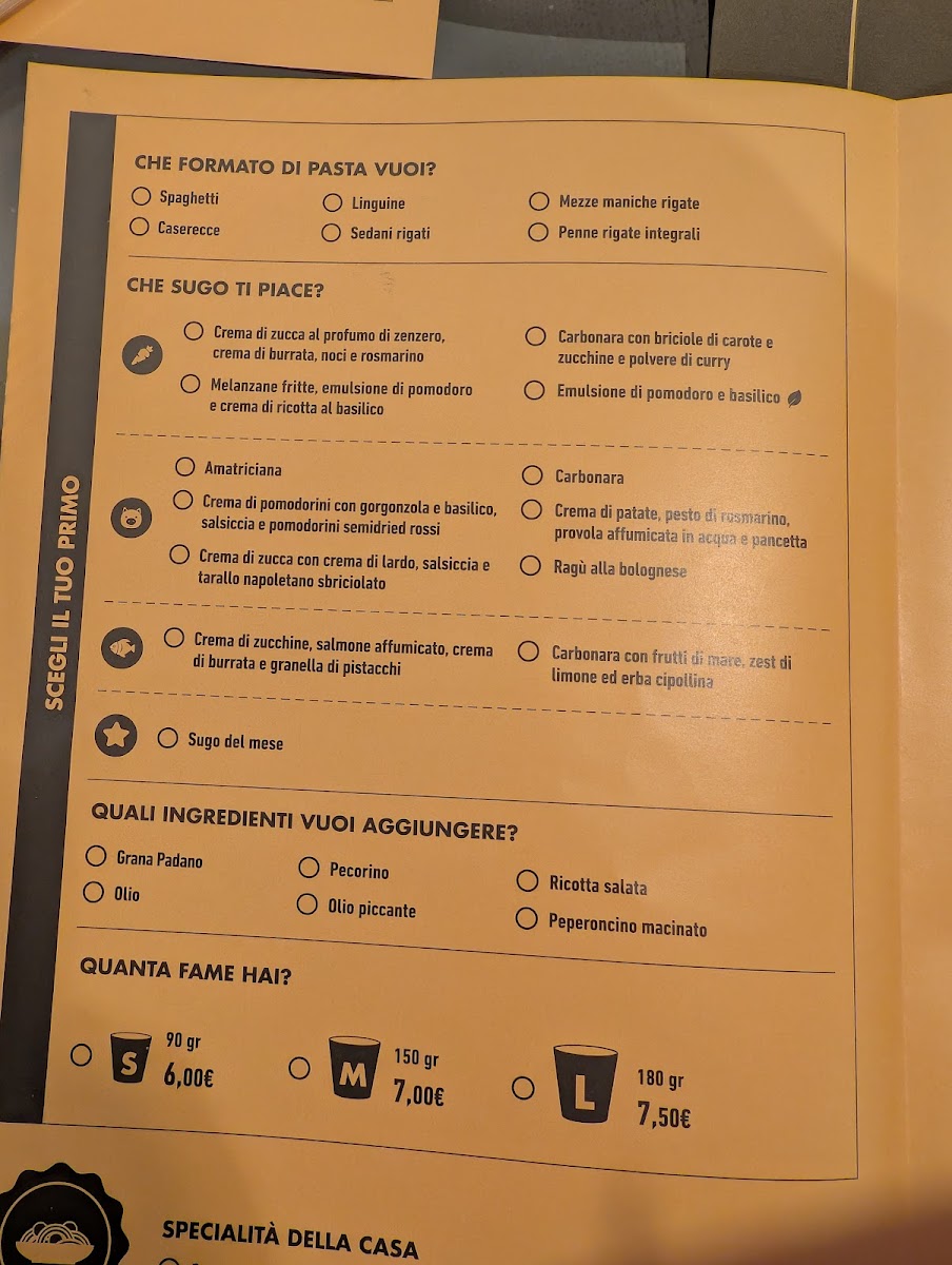 Welcome to Primo - Pasta & Street Food Pisa, a culinary gem nestled in the heart of Pisa, Italy. Locals rave about the mouthwatering pasta offerings that allow diners to customize their experience with various pasta types and delectable sauces. Diners can choose from three generous portion sizes, ensuring everyone finds their perfect fit.